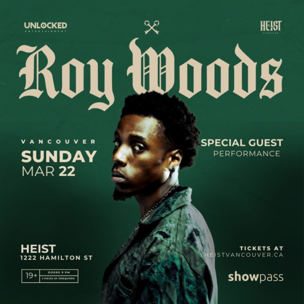 Roy Woods brings his Flower City catalogue as a special guest performance to Heist on March 22. The Toronto-born OVO Sound artist behind defining tracks like “Drama” (ft. Drake) and “Gwan Big Up Yourself” continues to shape modern R&B with new releases including “HONEY” and “Get Down” from the Flower City Heartbreak era.